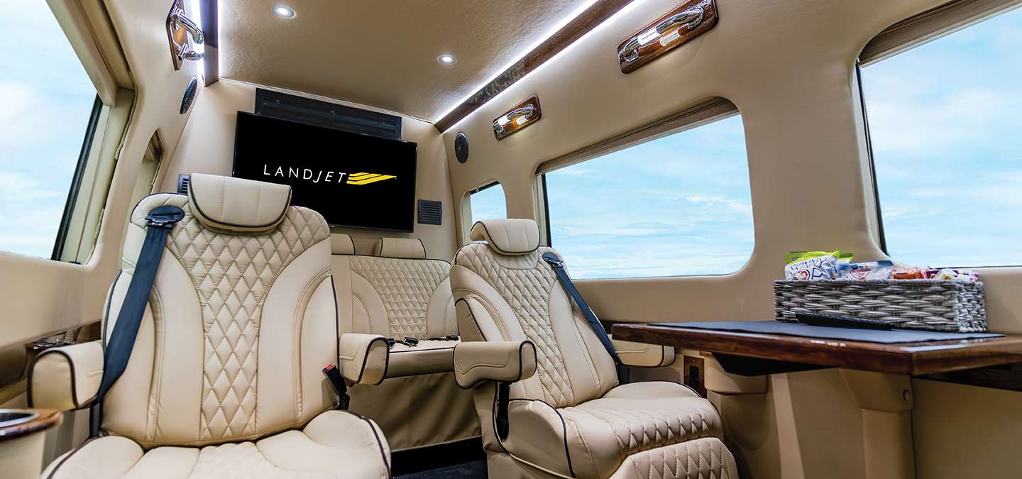 Whether you are traveling alone or with a large group, LandJet has a vehicle to provide you everything you need to be comfortable, yet productive and efficient while traveling to your destination. With in-vehicle WiFi connection, refrigerator, TVs, and upgraded stereo, we have created innovative mobile office vehicles for the active business professional who values productivity.